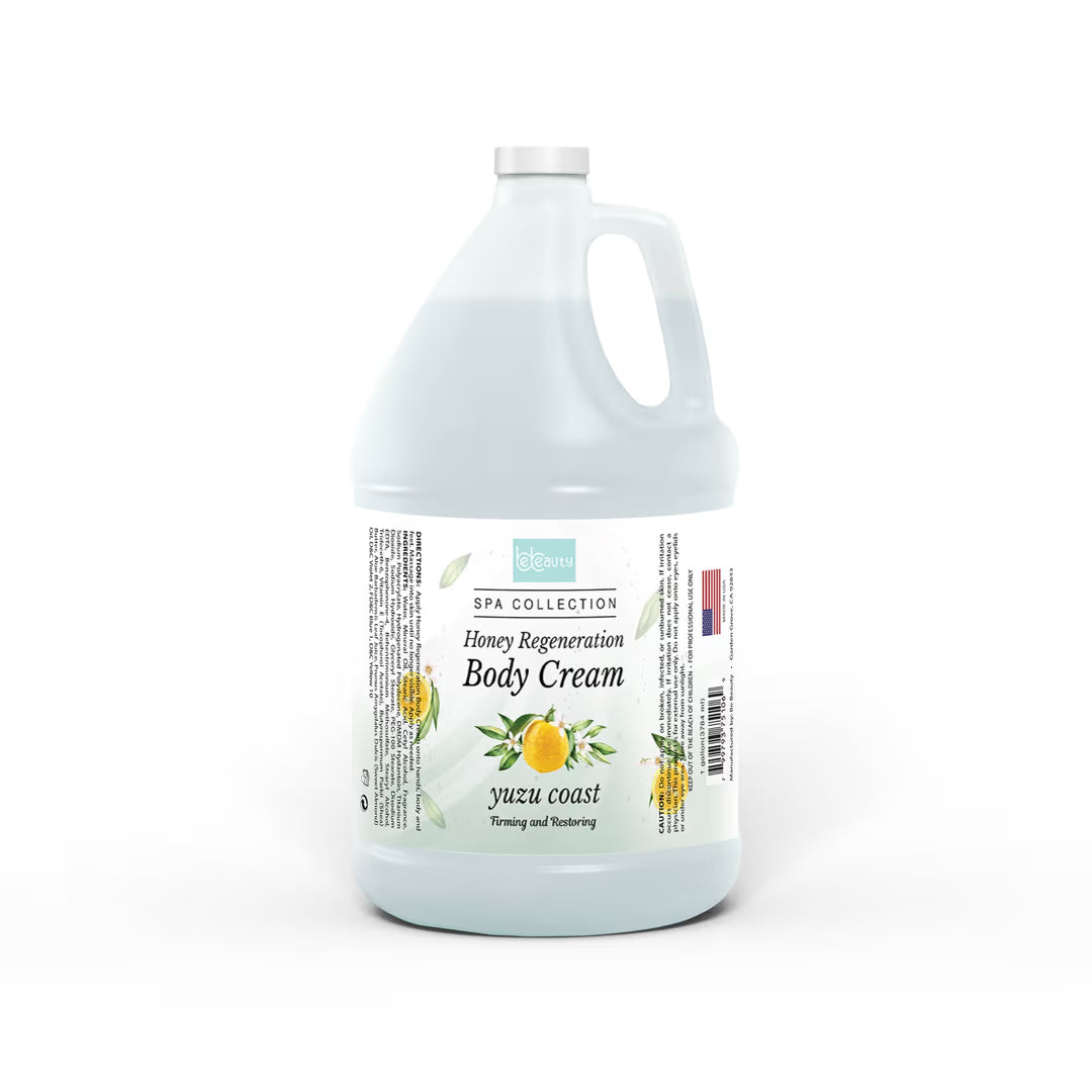 Yuzu Coast Honey Regeneration Body Cream. Captures the essence of a sunlit shoreline—where creamy, zesty yuzu meets a soft breeze of lavender and fresh florals. A refreshing blend of citrus and calm, this fragrance invites you to drift into tranquility with every step of your spa ritual. Our luxurious formulations are crafted to indulge and pamper, leaving your skin feeling silky smooth and lightly scented. Ideal for creating a signature line that embodies sophistication and relaxation, suitable for all.
