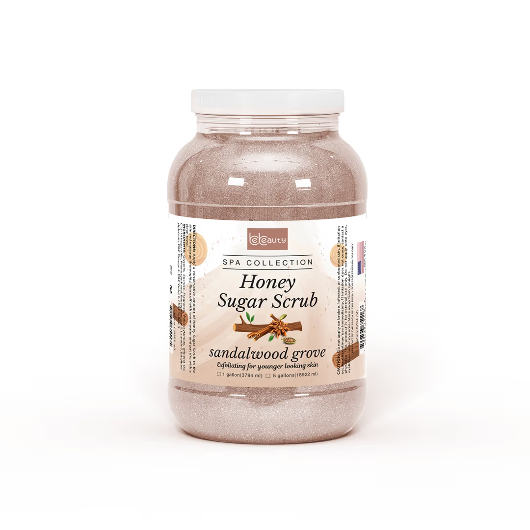 Sandalwood Grove Honey Sugar Scrub  Immerse yourself in the rich, earthy notes of sandalwood blended with the warm embrace of cedarwood and a subtle whisper of musk. This timeless fragrance evokes the tranquility of a secluded forest grove, perfect for soothing the senses and nurturing the skin. Our luxurious formulations are crafted to indulge and pamper, leaving your skin feeling silky smooth and lightly scented. Ideal for creating a signature line that embodies sophistication and relaxation, suitable for all.