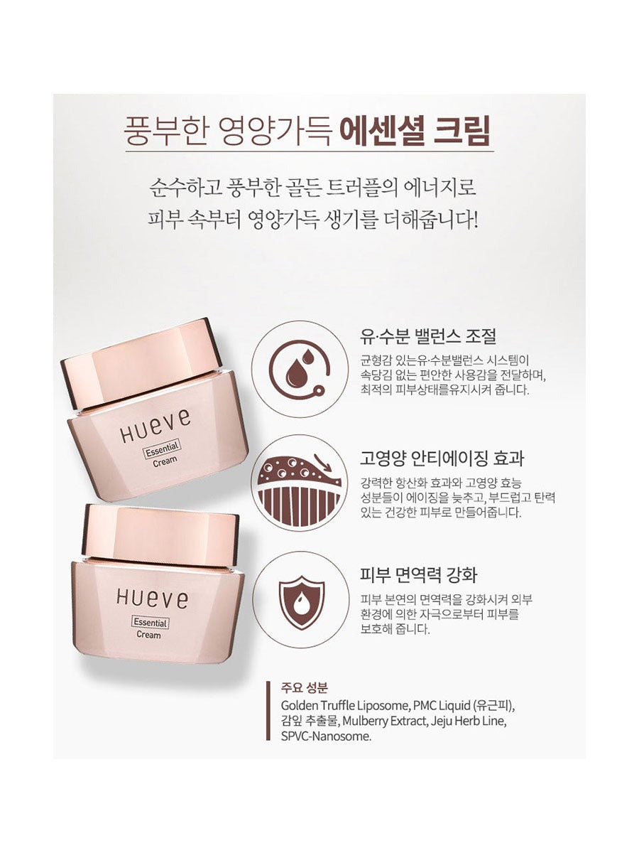 Hueve Essential Cream for deep penetration of nourishment and hydration.