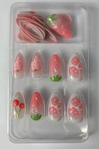 Bite My Nails Strawberries Almond Medium Press-on Nails with Glue