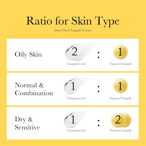 Introducing the Deep Vita C Capsule Cream, a revolutionary skincare solution designed to care for uneven skin tone and spots, leaving your skin bright, radiant, and even-toned. This customizable cream features a unique dual-texture formula, combining a Vitamin Capsule cream with a transparent gel.