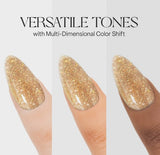 Astral Gel Couleur is a collection of 40 shades in 4 light-refracting, otherworldly finishes—Flash Glitter, Pearlescent, Velvet, and Shimmer Cat Eye. These streak-free, self-leveling formulas leave a unique energetic signature on the nail, empowering you to create looks that resonate on a spiritual level.