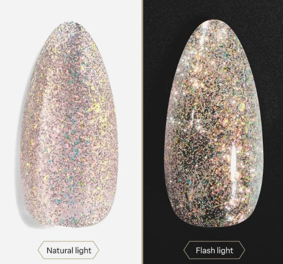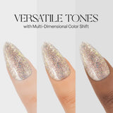 Astral Gel Couleur is a collection of 40 shades in 4 light-refracting, otherworldly finishes—Flash Glitter, Pearlescent, Velvet, and Shimmer Cat Eye. These streak-free, self-leveling formulas leave a unique energetic signature on the nail, empowering you to create looks that resonate on a spiritual level.