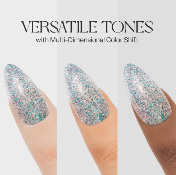 Astral Gel Couleur is a collection of 40 shades in 4 light-refracting, otherworldly finishes—Flash Glitter, Pearlescent, Velvet, and Shimmer Cat Eye. These streak-free, self-leveling formulas leave a unique energetic signature on the nail, empowering you to create looks that resonate on a spiritual level.