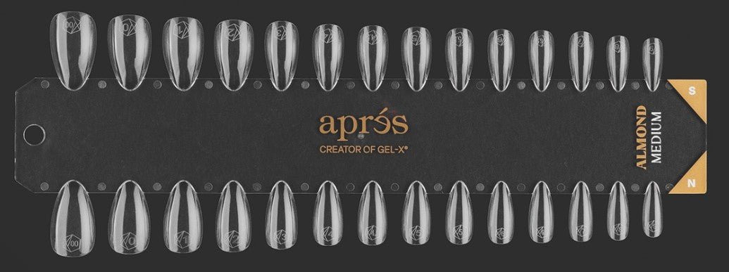 The Gel-X® Tip Swatches assists in discovering and identifying the perfect Gel-X® Tip for your client. Featuring a wide variety of styles, lengths and shapes, giving you an advantage to improve the nail application process with speed and ease. Crafted from sturdy acrylic, these swatches resist bending and breaking, ensuring long-term reliability. Each swatch is clearly labeled with the tip shape, length, and size, making it simple to find the perfect fit and style.