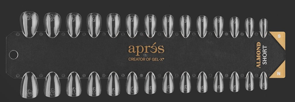 The Gel-X® Tip Swatches assists in discovering and identifying the perfect Gel-X® Tip for your client. Featuring a wide variety of styles, lengths and shapes, giving you an advantage to improve the nail application process with speed and ease. Crafted from sturdy acrylic, these swatches resist bending and breaking, ensuring long-term reliability. Each swatch is clearly labeled with the tip shape, length, and size, making it simple to find the perfect fit and style.