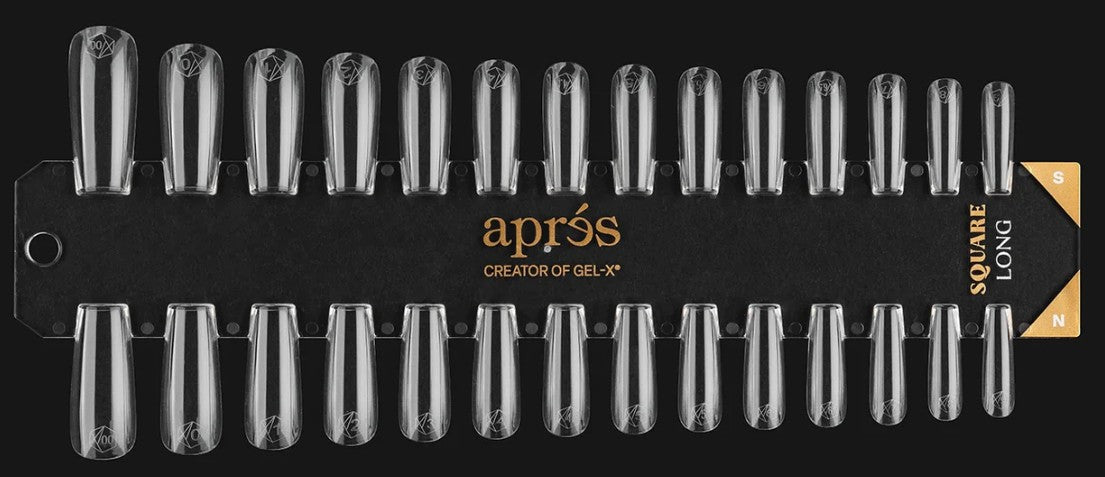 The Gel-X® Tip Swatches assists in discovering and identifying the perfect Gel-X® Tip for your client. Featuring a wide variety of styles, lengths and shapes, giving you an advantage to improve the nail application process with speed and ease. Crafted from sturdy acrylic, these swatches resist bending and breaking, ensuring long-term reliability. Each swatch is clearly labeled with the tip shape, length, and size, making it simple to find the perfect fit and style.