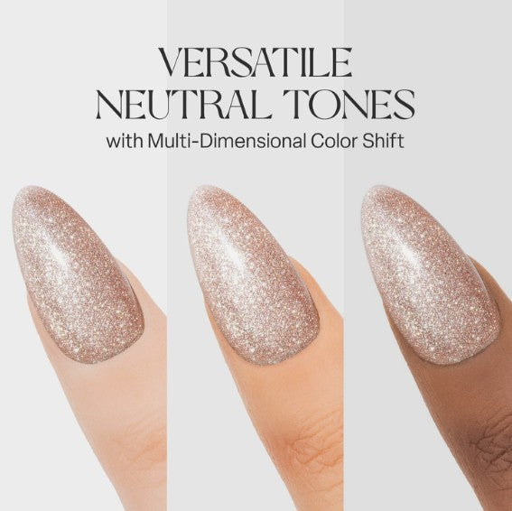 Astral Gel Couleur is a collection of 40 shades in 4 light-refracting, otherworldly finishes—Flash Glitter, Pearlescent, Velvet, and Shimmer Cat Eye. These streak-free, self-leveling formulas leave a unique energetic signature on the nail, empowering you to create looks that resonate on a spiritual level.