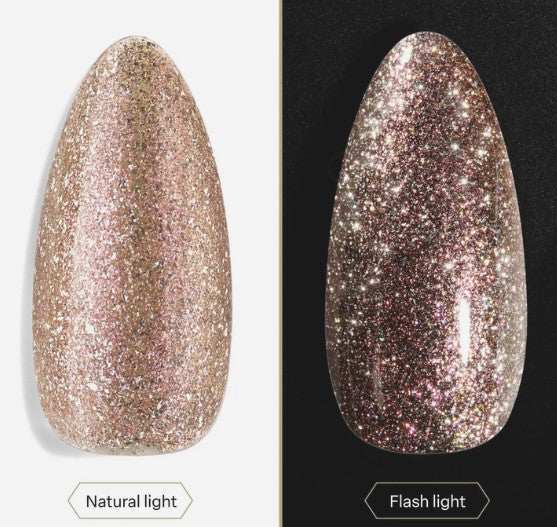 Astral Gel Couleur is a collection of 40 shades in 4 light-refracting, otherworldly finishes—Flash Glitter, Pearlescent, Velvet, and Shimmer Cat Eye. These streak-free, self-leveling formulas leave a unique energetic signature on the nail, empowering you to create looks that resonate on a spiritual level.