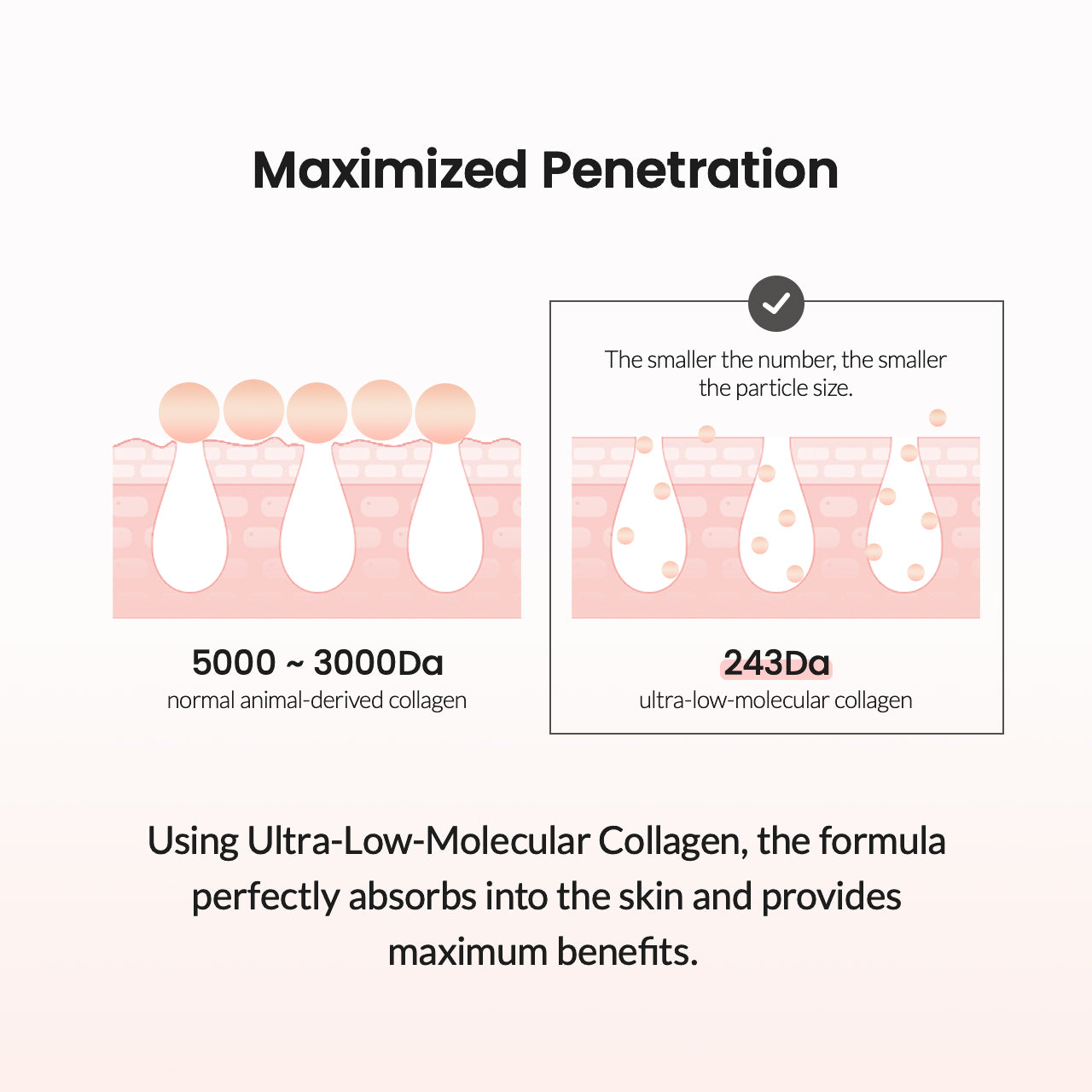 ABILITY TO ABSORB COLLAGEN: Collagen can only be absorbed through the skin with a molecular weight of 500Da and below. This cream is infused with collagen molecules that are 243Da to increase absorption.