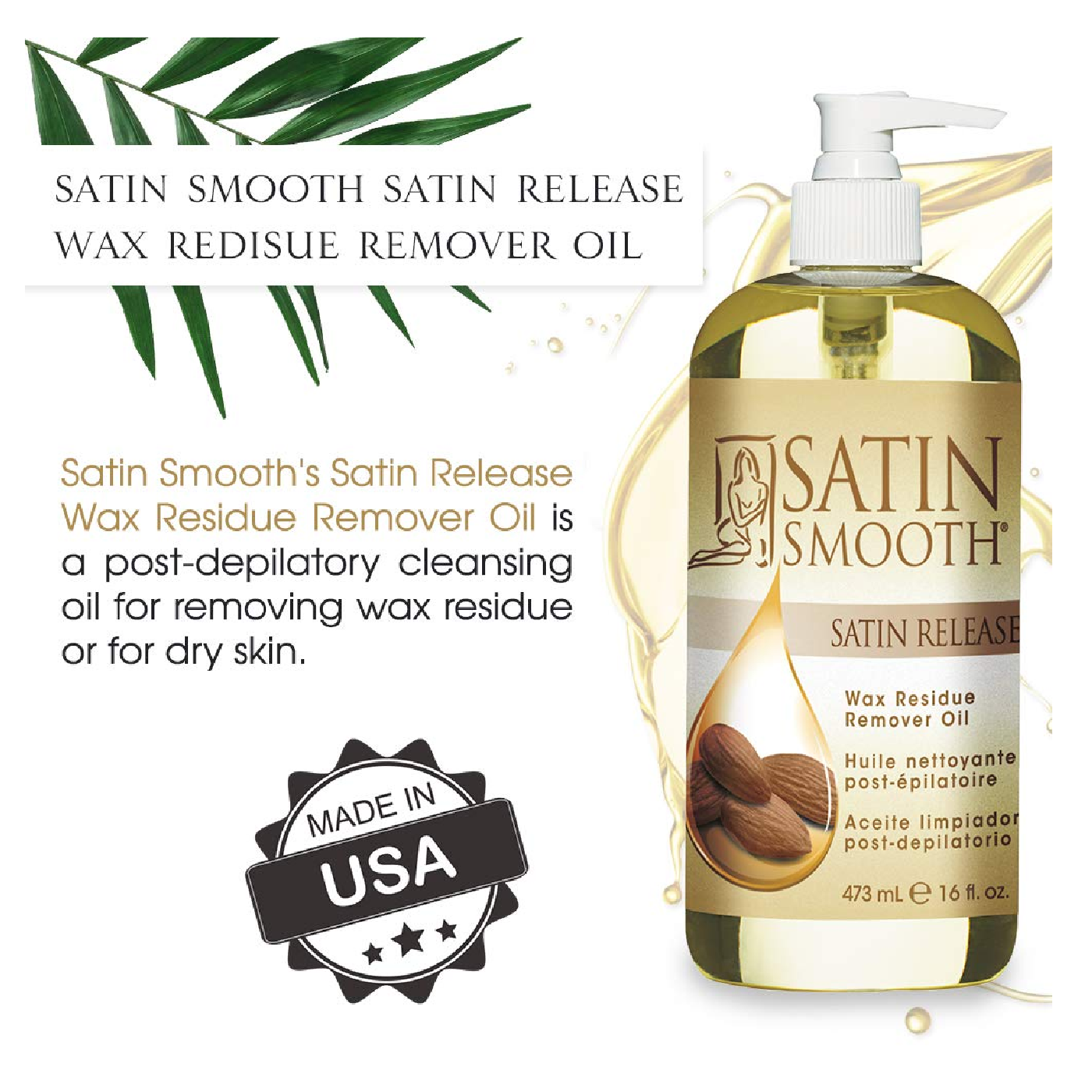 - Gentle Almond Oil Formulation: Transform your skin with the skin-nourishing benefits of Almond Oil! The Satin Release?? Wax Residue Remover features a potent yet gentle formulation that not only removes wax residue but also treats post-wax skin with much-needed TLC. Enriched with Vitamin E, Sunflower Oil, Wheat Germ Oil, and other beneficial ingredients. Leaves skin feeling clean, fresh, and healthy with a luxurious scent!